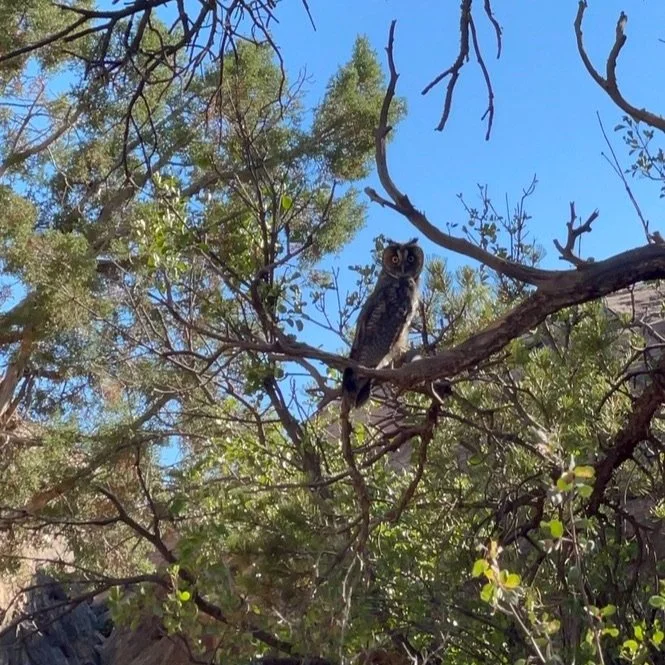Inside the park we explored Potholes and hiked the Cave Spring Trail where we had a very close encounter with an long eared owl. We camped at Needles Outpost, a private campground right outside the park. We enjoyed a wonderful evening and night at the camp, with the girls scampering around on the rocks.