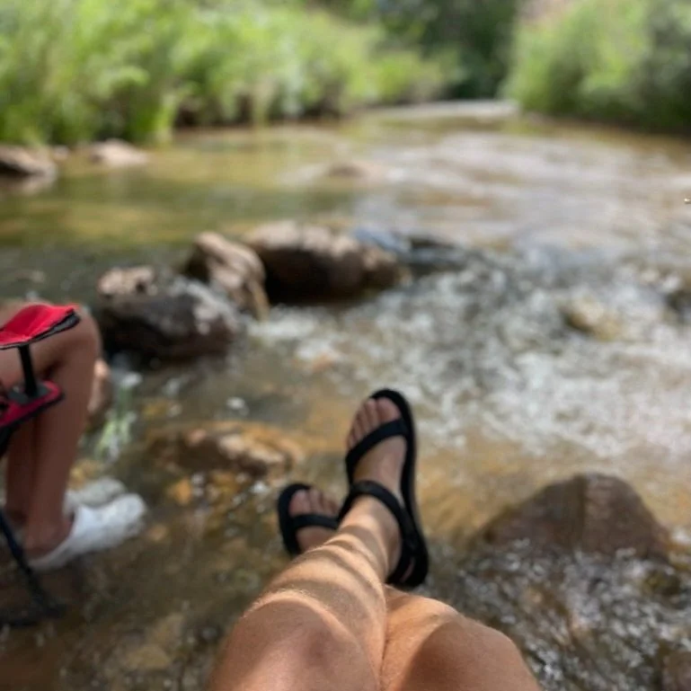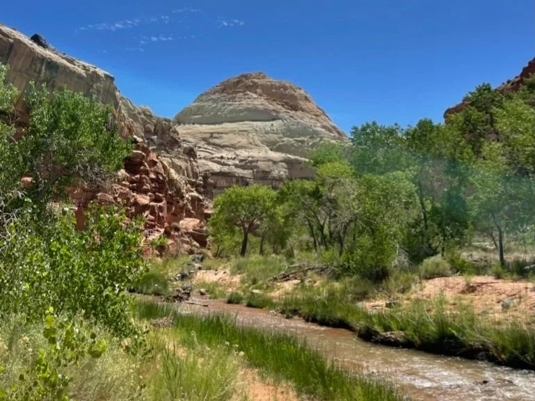 We did get set up for a day at Fruita Campground in the middle of Capitol Reef before abandoning camping for a hotel. The spot we scored was adjacent to a cool mountain stream that served as a nice place to soak our feet and read a book for a bit. And we’d make our way back to this area in future days.